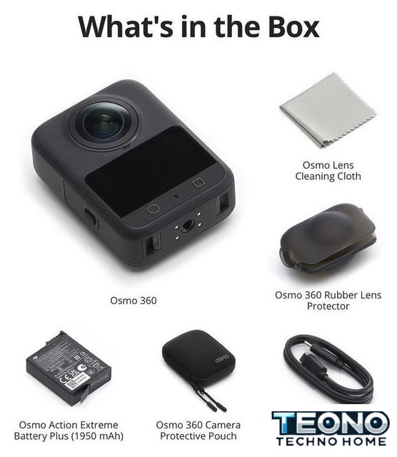 | Комплект поставки | - Экшн-камера DJI Osmo 360 (комплект Standard Combo)- Кабель зарядки USB-C с поддержкой PD- Резиновая крышка для защиты объектива- Аккумулятор (1950 мА·ч)- Защитный чехол- Салфетка для чистки объектива- Наклейка с логотипом |