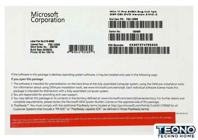 Изготовитель: Майкрософт Корпорейшн. Уан Майкрософт Уэй, Рэдмонд, ВШ 98052-6399, США