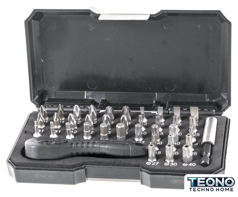 | Комплектация | магнитный держатель длиной 60 мм;, ключ-трещотка длиной 92 мм для сменных наконечников;, биты длиной 25 мм: 2 х PH1, 2 x PH2, 2 х PH3, 2 х PZ1, 2 x PZ2, 2 х PZ3, T10, T15, T20, T25, T27, T30, T40, Torx с отверстием T10, T15, T20, T25, T27, T30, T40, SL3, SL4, SL5, SL6, H2, H2.5, Н3, Н4, Н5, Н6. |