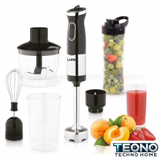 | Комплектация | венчик из нержавеющей сталичашка (контейнер) для взбивания емкостью 0,5 лкухонный комбайн емкостью 0,5 л с лезвиембутылкf емкостью 0,6 л из тритана с лезвием из нержавеющей стали, герметичной завинчивающейся крышкой.подставка для аксессуаров (венчик и лезвие) |