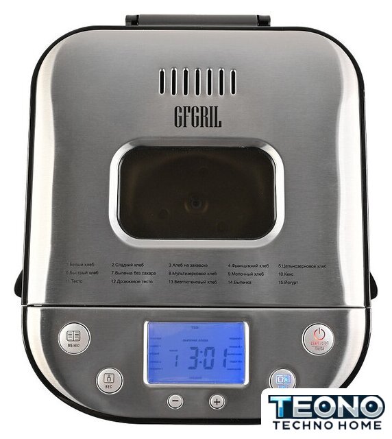 Перечень режимов работы | кекс, сладкая выпечка, безглютеновая выпечка, французский хлеб, быстрая выпечка, цельнозерновой хлеб, молочный хлеб, хлеб на закваске, без сахара |