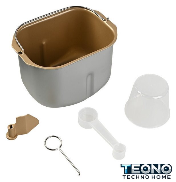 Комплектация | мерная ложка, мерный стакан, лопасть для замешивания теста, крюк для извлечения лопасти |