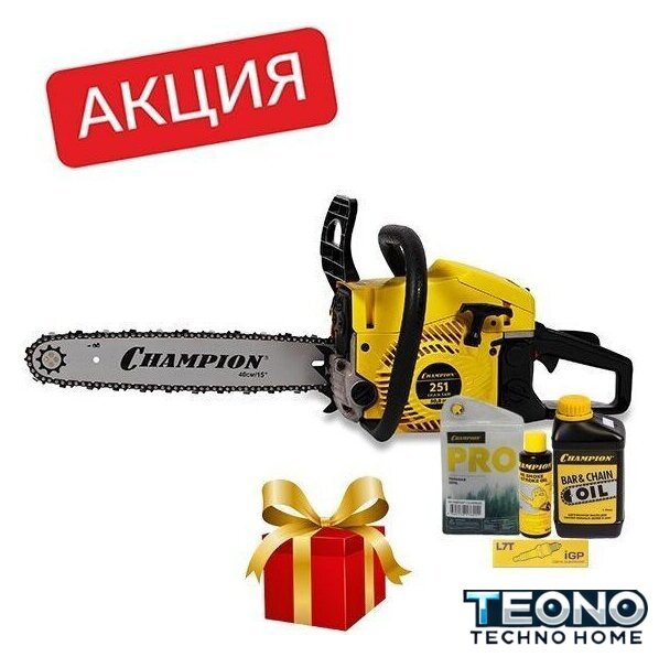 | Комплект поставки | - Пила бензиномоторная цепная- Шина- Цепь- Упор зубчатый- Чехол пильного аппарата- Ключи монтажные- Ёмкость для топливной смеси- Отвёртка- Руководство по эксплуатации- Список авторизованных сервисных центров- Упаковка- Акционный набор (масло для цепи 1л; свеча; цепь; масло для 2-тактных двигателей 0.1л) |