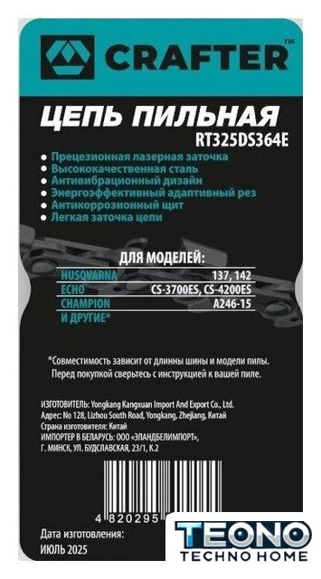 | Шаг цепи | 0.325" |