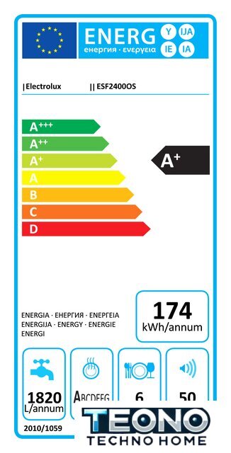 загрузка на 6 комплектов посуды, 6 программ