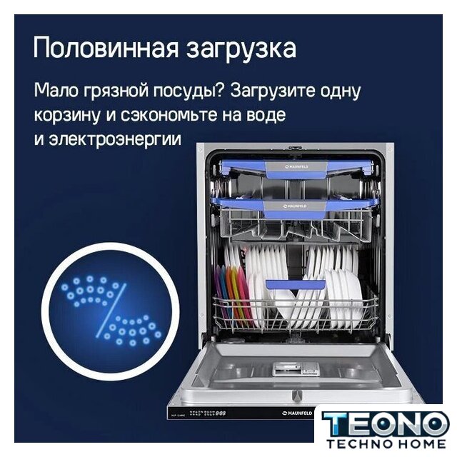 | Дополнительные опции | сокращение времени мойки, дополнительная сушка, половинная загрузка (экономия воды) |