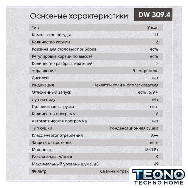 | Дополнительные опции | дополнительная сушка, половинная загрузка (экономия воды) |