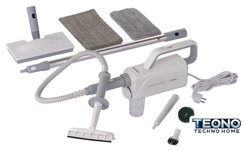 | Комплектация | напольная насадка, две моп-тряпки, удлинительная трубка, удлинительный шланг, насадка с нейлоновой щеткой, насадка с падом, длинная щелевая насадка, насадка для окон с коллектором, насадка для глажки, мерный стакан |