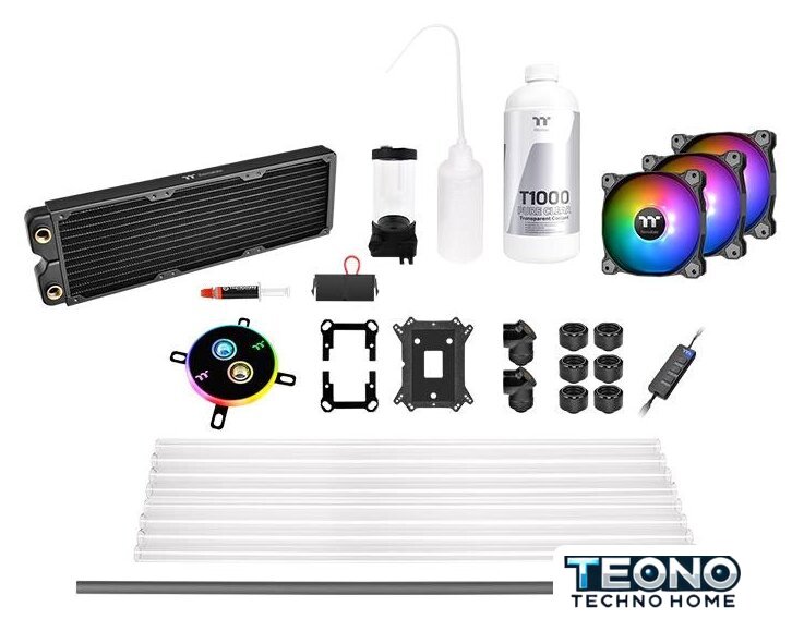 | Комплектация | - Водоблок для процессора: Pacific W4 ARGB CPU (1 шт.) - Помпа: Pacific PR15-DDC Pump/Reservoir Combo (1 шт.) - Радиатор: Pacific C360 Radiator (1 шт.)- Вентиляторы: Pure 12 ARGB Sync Radiator Fan TT Premium Edition (3 шт.)- ARGB LED Controller Фитинги: Pacific C-Pro G14 PETG 16mm OD Compression - Black (6 шт.)- Pacific G1/4" 90 Degree Adapter - Black (2шт.)- Трубки: V-Tubler PETG Tube 16mm OD 500mm (8 шт.)- Охлаждающая жидкость: T1000 Coolant Pure Clear (1 шт.)- Дополнительные аксессуары: - Silicone insert - Intel and AMD - Universal Backplated & Mounting Kit - 24pin ATX Bridge Tool (1 шт.)- Thermaltake Thermal Grease (1 шт.) |