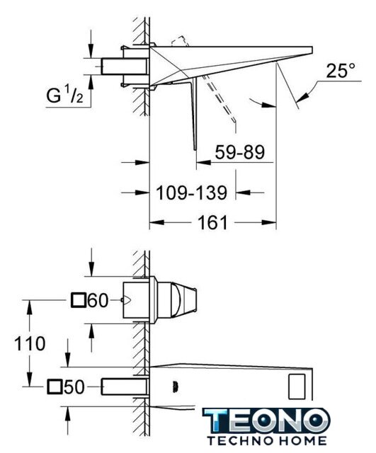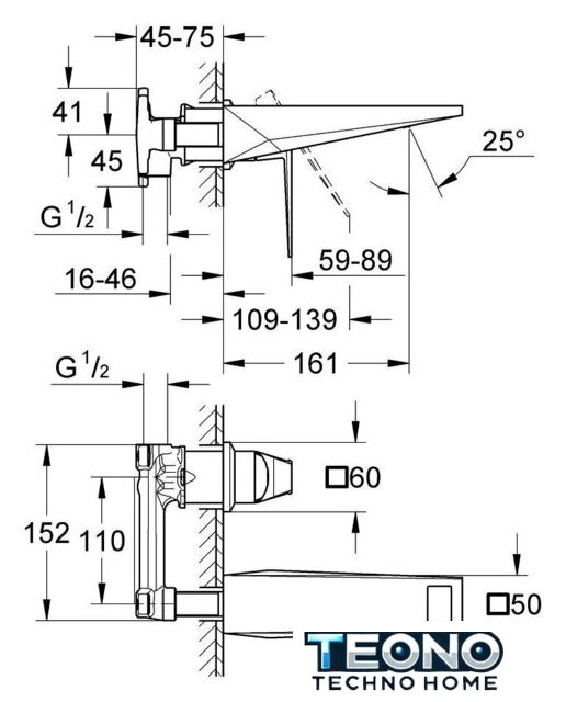 | Длина (вылет) излива | 161 мм |