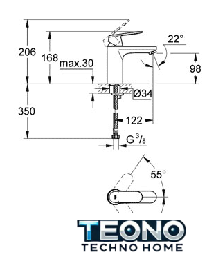 | Длина (вылет) излива | 122 мм |
