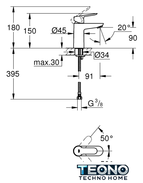 | Длина (вылет) излива | 91 мм |