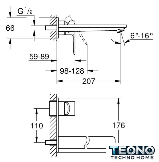 | Длина (вылет) излива | 207 мм |