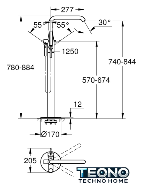 смеситель, монтаж на пол