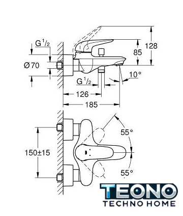 Длина (вылет) излива | 185 мм |