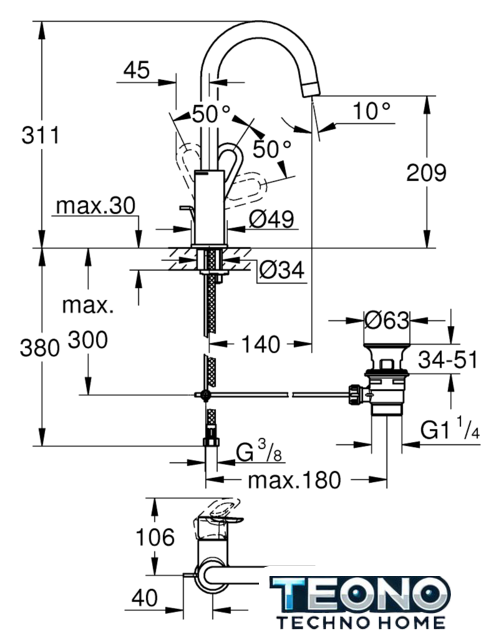 | Высота излива | 209 мм |