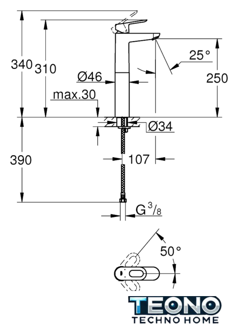 | Высота излива | 250 мм |