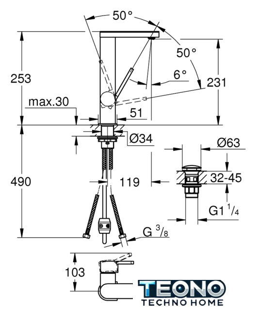 | Высота излива | 231 мм |