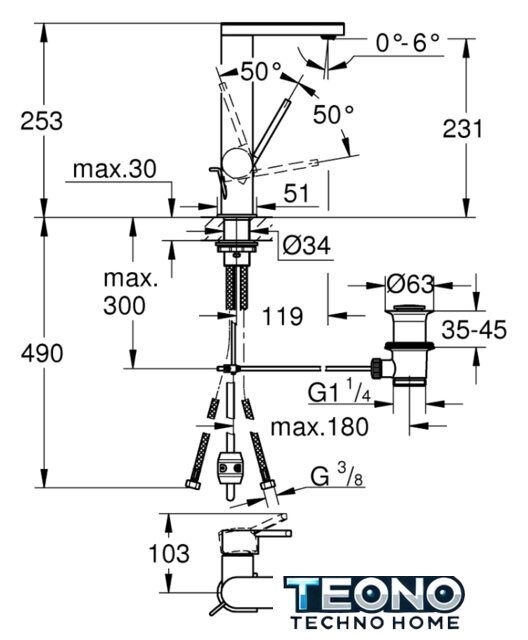 | Поворотный излив | 90 ° |