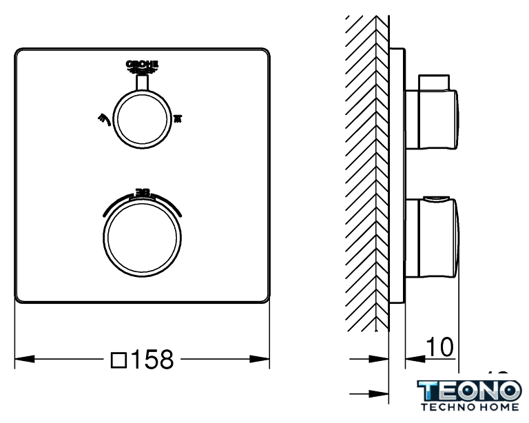 термостатический вентиль для душа, монтаж скрытый
