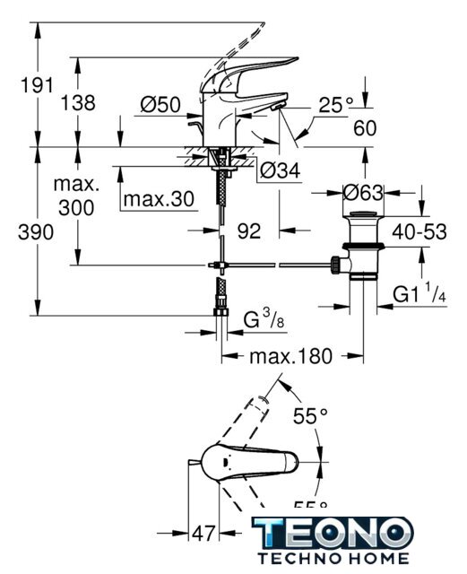 | Высота излива | 60 мм |