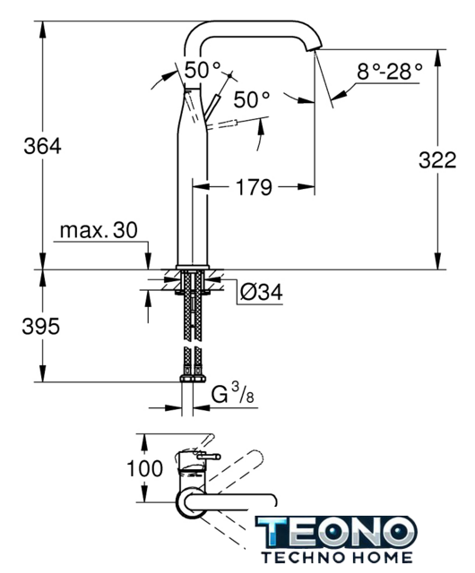 | Высота излива | 322 мм |