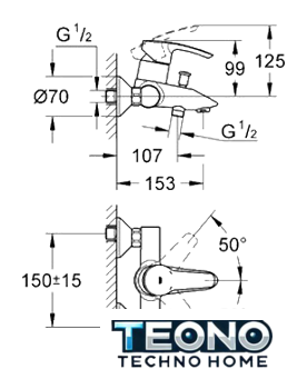 | Длина (вылет) излива | 153 мм |