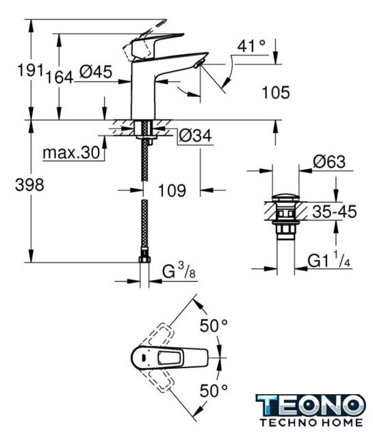 | Длина (вылет) излива | 109 мм |