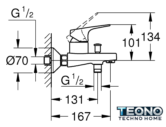| Длина (вылет) излива | 167 мм |