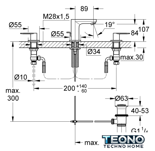 | Длина (вылет) излива | 89 мм |