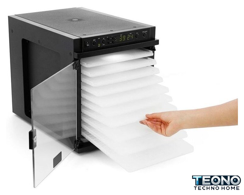 | Комплектация | 1 дегидратор11 мелкосетчатых лотков (из пластика BPA-free)1 лоток-подставка для сбора крошек (из пластика BPA-free)1 съёмный шнур питания1 инструкция по эксплуатации1 многоразовый воздушный фильтр |