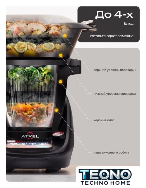 | Функции | блендер, взбивание, смешивание, замешивание дрожжевого теста, измельчитель, рубка, пароварка, температурная обработка (нагрев) |