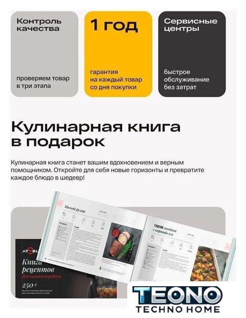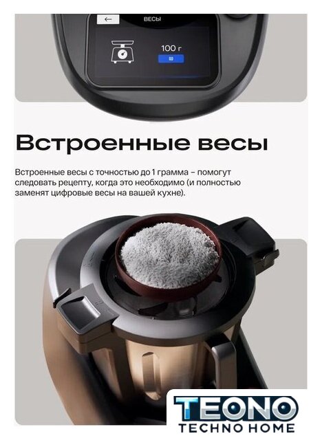 | Полная комплектация | основное устройство, чаша из нержавеющей стали 3.2 л, блендер 2 л, мясорубка, 4 сменные насадки (многофункциональный нож, лопатка для жарки, лопатка для замешивания, насадка для су-вид), встроенные весы, защитная крышка, руководство пользователя |