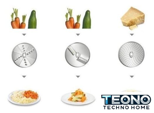 | Функции | мясорубка, блендер, цитрус-пресс, взбивание, смешивание, замешивание дрожжевого теста, терка, шинковка, ломтерезка |