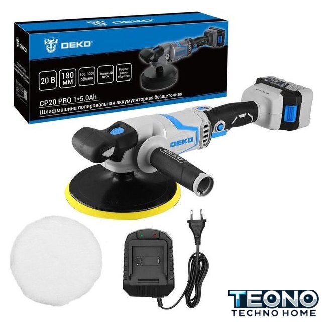 | Комплект поставки | - Шлифмашина – 1 шт.- Опорная тарелка – 1 шт.- Полировальный круг (шерстяной) – 1 шт.- Аккумулятор 5,0 Ач – 1 шт.- Зарядное устройство – 1 шт.- Дополнительная рукоятка – 1 шт.- Руководство по эксплуатации- Коробка |