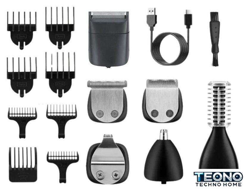 | Насадки | гребни, точный триммер, для носа и ушей, бритва |