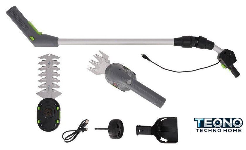 | Комплектация | - Аккумулятор 3.6В 1.5А·ч, - Два сменных лезвия (для травы и кустов), - Телескопическая ручка с колесами, - Зарядное устройство, - Руководство пользователя |