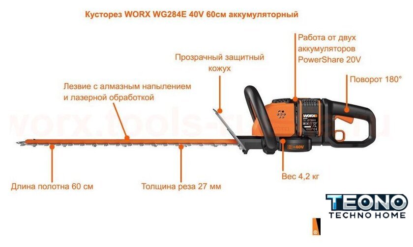 | Длина лезвия (для кустов) | 600 мм |