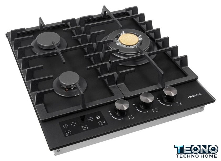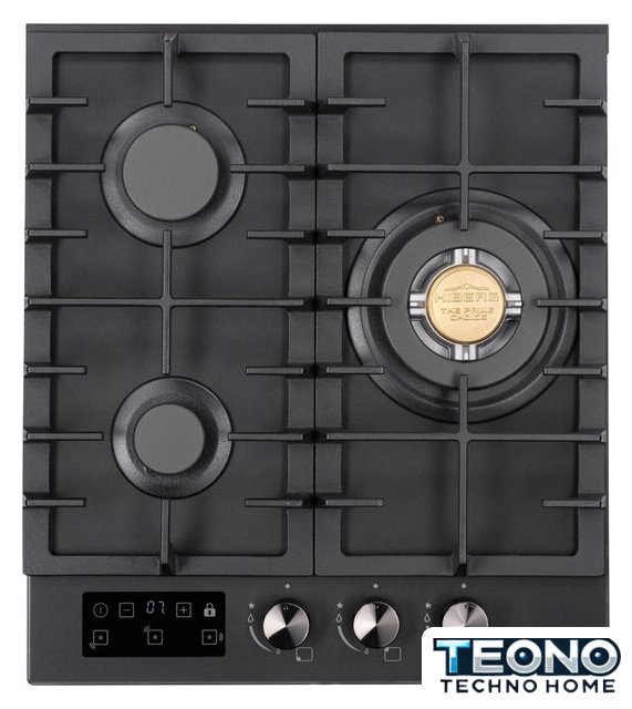 | Подробная информация о конфорках | Одна конфорка WOK с тройным рядом пламени, мощностью 3.4 кВт, две стандартные газовые конфорки. |