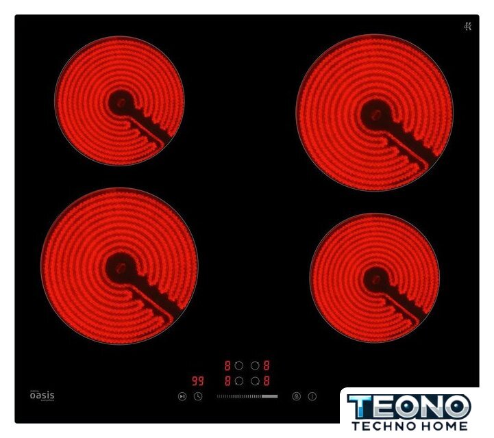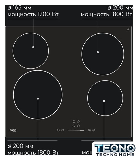 | Подробная информация о конфорках | Ближняя левая конфорка - 200 мм/1.8 кВт, ближняя правая - 165 мм/1.2 кВт, дальняя левая - 165 мм/1.2 кВт, дальняя правая - 200 мм/1.8 кВт |
