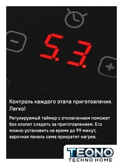 Подробная информация о конфорках | 2х1500Вт (бустер 2000Вт)2х2000Вт (бустер 2800Вт)1x2300Вт (бустер 3000Вт) |