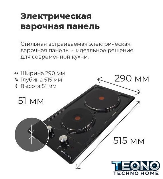 Подробная информация о конфорках | Мощность конфорок, Вт.: 1500, 1500 |