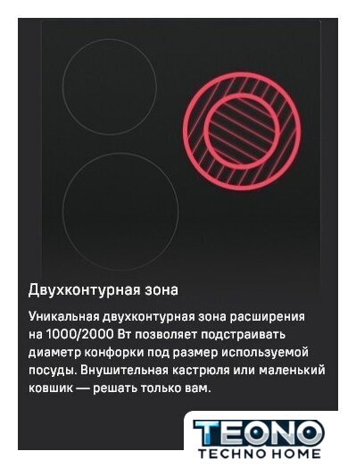 Подробная информация о конфорках | 1800, 1200, 2000/1000 Вт |