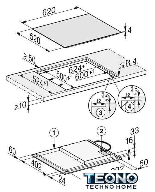 | Индукционные конфорки | 4 |