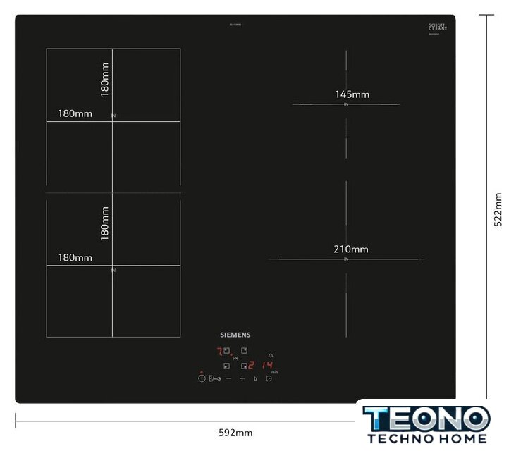 Подробная информация о конфорках | 1 x 1,4 (2,2) кВт, 1 x 2,2 (3,0) кВт, 2 x 1,8 (3,0) кВт |