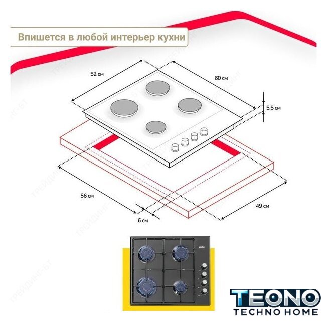 | Овальные/прямоугольные конфорки | нет |
