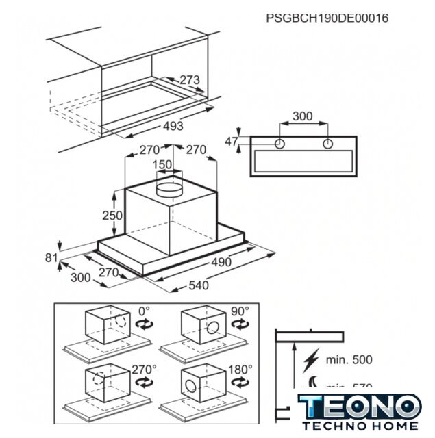 | Минимальная производительность отвода | 300 куб. м/ч |
