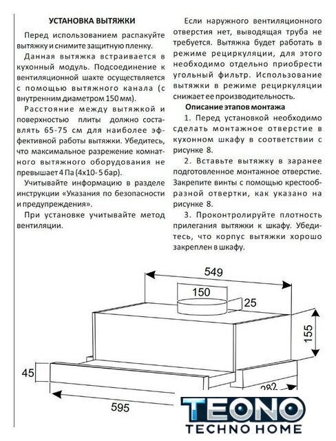 | Диаметр воздуховода | 150 мм |