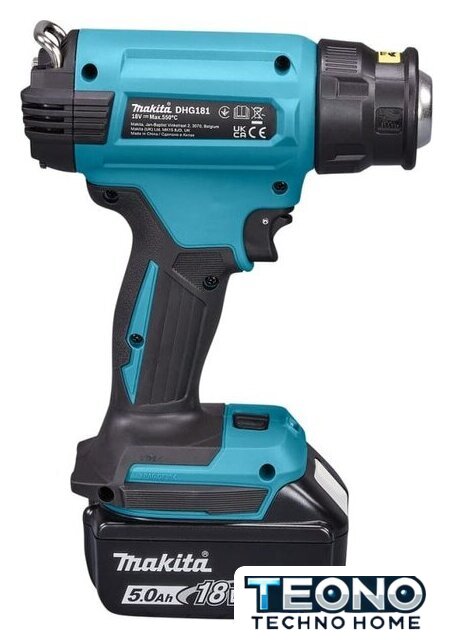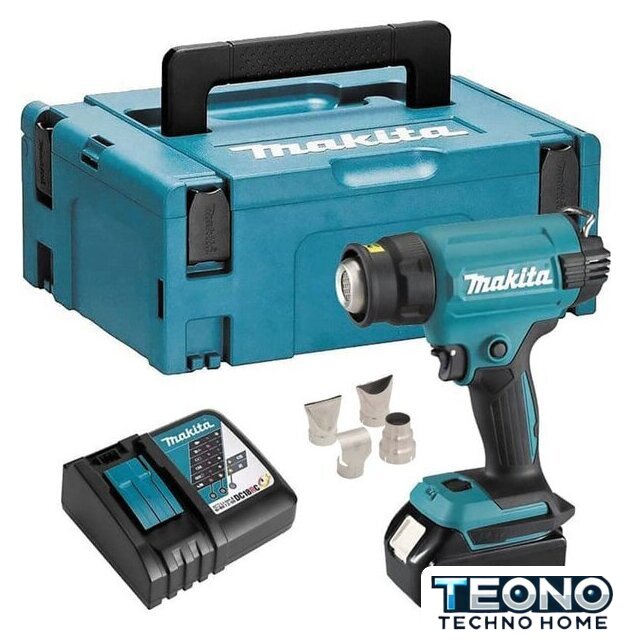 | Комплект поставки | - Термовоздуходувка- Широкое сопло с широкой щелью - Широкое сопло с узкой щелью - Сопло с отражателем - Широкое сопло - Кейс Makpac тип 2- Зарядное устройство Makita DC18RC (14,4-18В, Li-Ion)- Аккумулятор Makita BL1850B (18В, 5.0Ач, Li-Ion) |