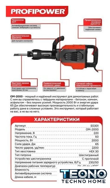 | Частота ударов | 2 200 ударов/мин |